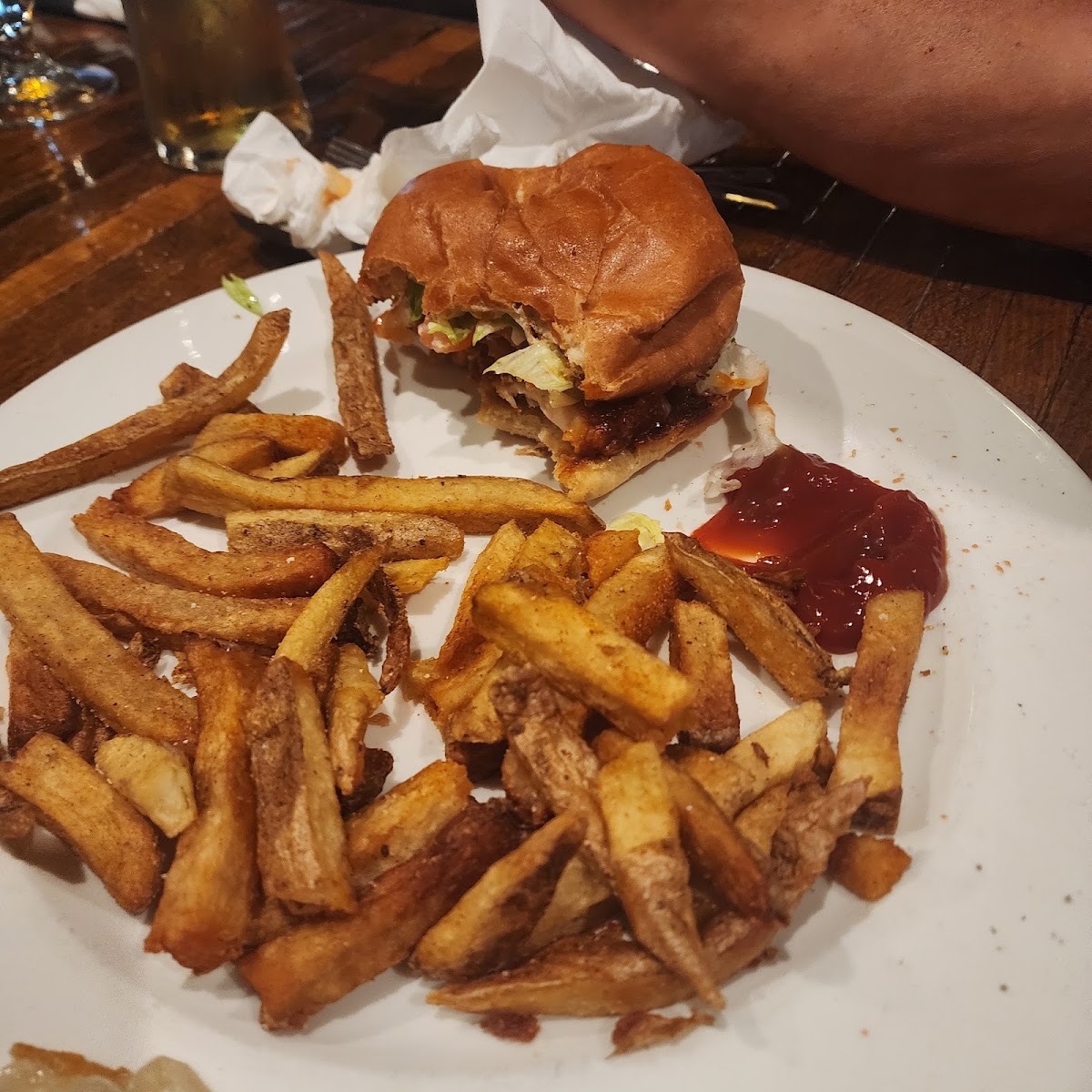 The ambiance often comes alive with live music nights, where talented local artists set the tone for a relaxed evening. Sports fans aren’t left out either - multiple screens around the bar mean you can catch your favorite games while enjoying some Pound O Wings or Sweet Potato Fries.